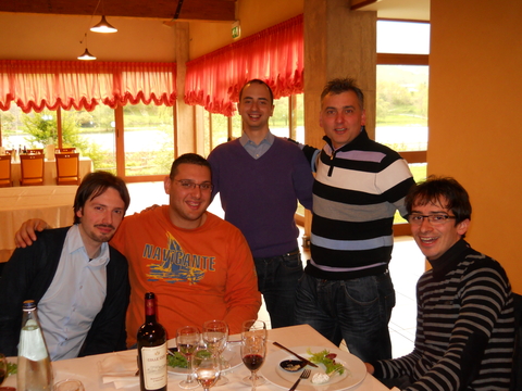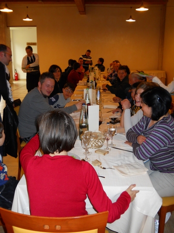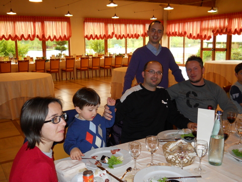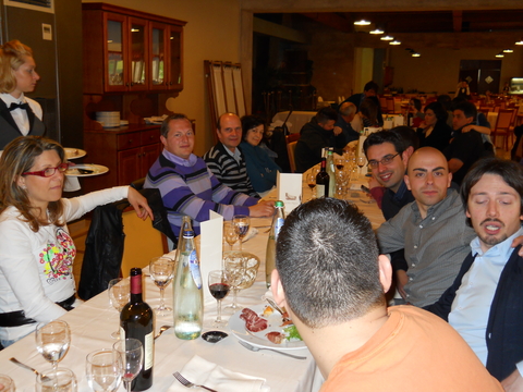 Da sinistra la signora Mirella,moglie di Melamir che siede seguito da Gennaro e consorte.A destra c'e' Stefano con la sua vertigine e Danilo fortemente provato dal vino,la faccia e' eloquente!ah ah ah Poi ronaldinho84 e Gianchi.