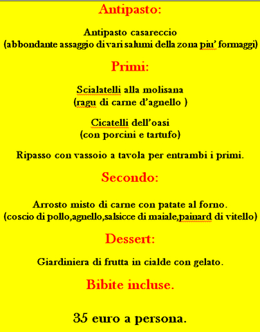 Due primi piatti:scialatelli alla molisana e i cicatelli dell'Oasi ( CI SARA' IL RIPASSO CON VASSOI PER ENTRAMBI I PRIMI)