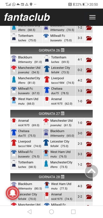 GIORNATE SUCCESSIVE - INIZIO LEGA CON LA GIORNATA DI SERIE A NUMERO 27