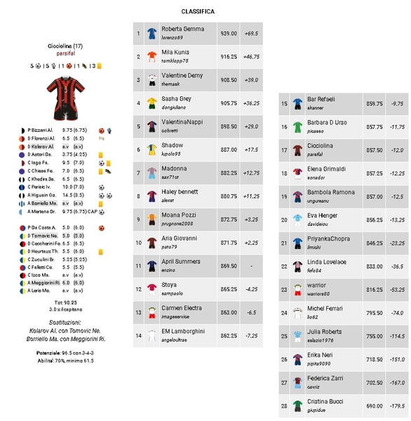 parsifal grazie alla sua Cicciolina vince l'ultima giornata.