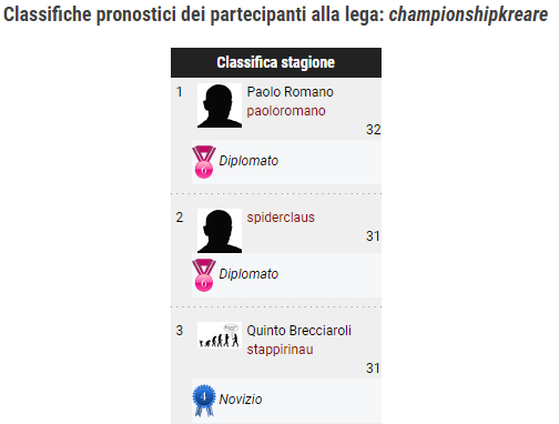 Di seguito l'estratto di tutte le classifiche :