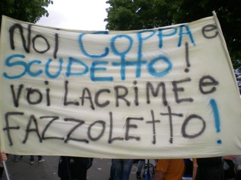 CONTINUATE A GUFARE..CONTINUATE....HAI DIMENTICATO DI INCITARE LA LAZIO DOMENICA, LA ROMA IL 5/05/2010, E TUTTE LE ALTRE SQUADRE CHE CI DIVIDONO DAI TRE TROFEI CHE DEVONO ESSERE ASSEGNATI