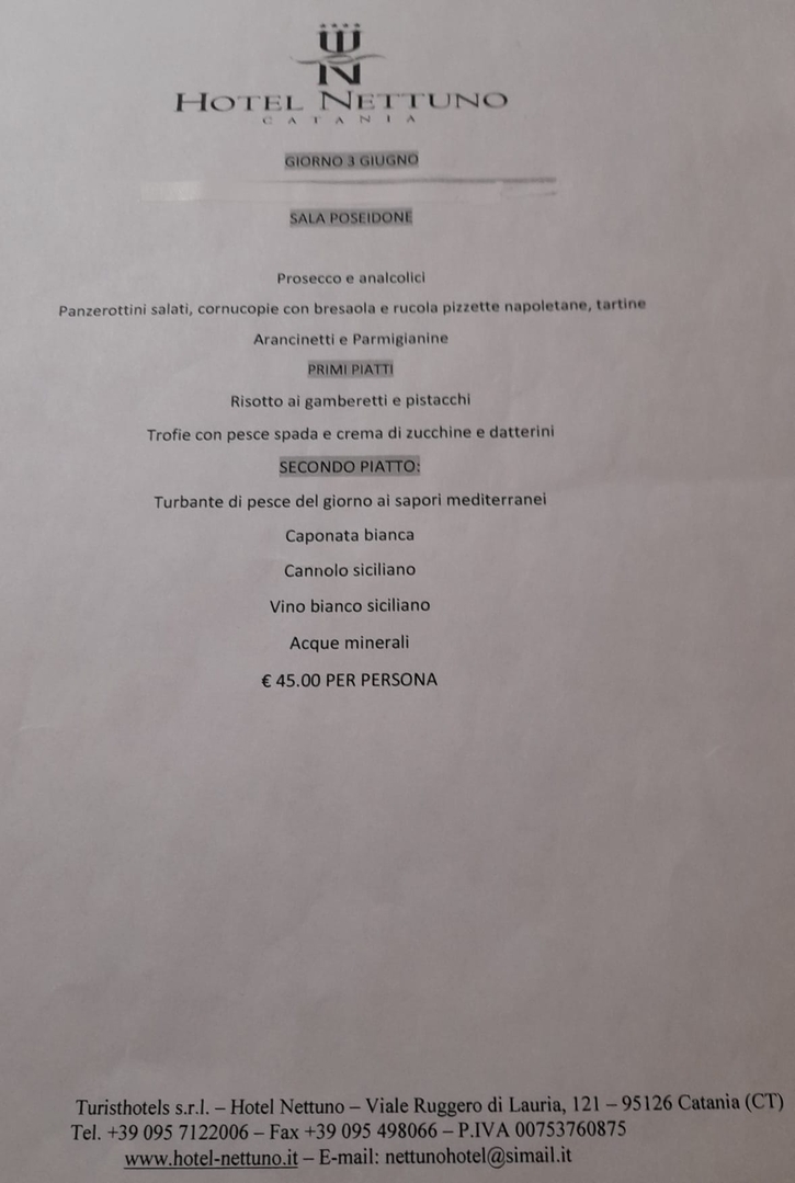 Stiamo per completare anche la definizione dei menù che vi sarà comunicato appena possibile, il menù principale sarà a base di pesce, ne abbiamo previsto anche uno a base di carne (per chi non volesse il pesce) e un'altro semplice e classico per i bambini.