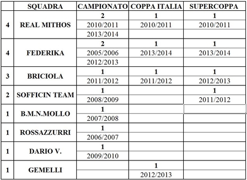 Siamo partiti con l'intento di mantenere la categoria boicottando play-off e 1'posto,ma la determinazione è stata tanta.In merito alle competizioni vogliamo una coppa di lega unica senza distinzioni di serie,è un'avvenimento importante la coppa Italia siamo andati fino in fondo ot...