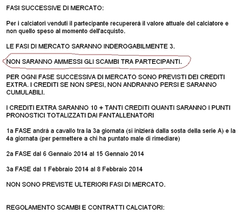 Potrei capire perché fate sempre polemiche? I cambi non sono stati ancora effettuati, c'è una commissione, proprio voi ne fate parte e dovete semplicemente votare...perché dobbiamo sempre complicare tutto inutilmente? Non voglio difendere PALLOTTA, ma proprio lui non vuole truffare nessuno, si diverte come ha sempre fatto scambiando i calciatori....il CICCM farà il suo dovere.