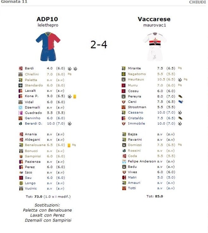 La Vaccarese c'è e non molla!.... il fantallennatore Maurinho sviene in panca al goal di Strootman allo scadere!....la zona Cesarini esiste anche per noi,ancora non è finita,ritengo solo noidgm una squadra che lotta essendo che le sue pedine sono in agguato a riacciuffare il pareggio in questa giornata.
