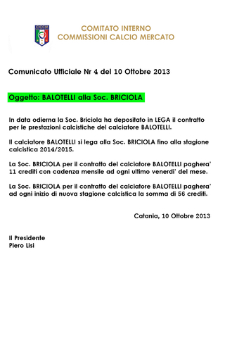 Oggetto: BALOTELLI alla Soc. BRICIOLA