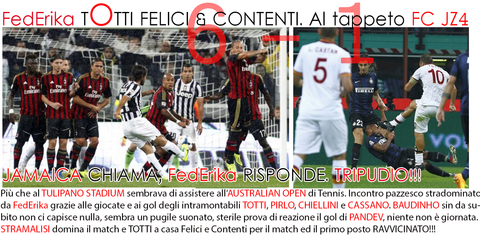 Incontro pazzesco stradominato da FedErika grazie alle giocate e ai gol degli intramontabili TOTTI, PIRLO, CHIELLINI e CASSANO.