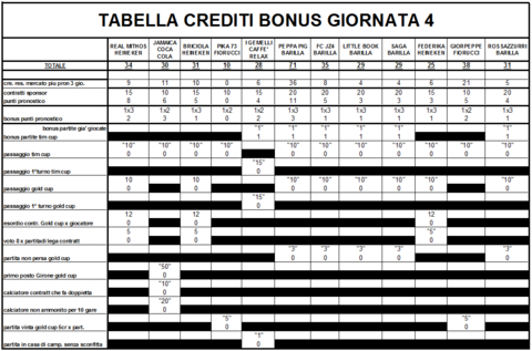 Don mi ero dimenticato i crediti dei pronostici della terza giornata senza i bonus sponsor perché ancora nino avevamo gli sponsor