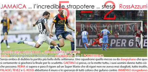 REINA si supera e para il rigore ad un Super Mario che di rigori non ne aveva mai sbagliati, tutto inutile, PALACIO, TEVEZ e G. ROSSI abbattono il muro e le speranze di tutti coloro che gufano contro.