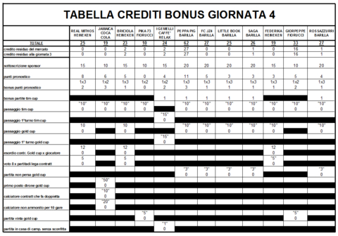 PRESTO TROVERETE I CREDITI AGGIORNATI NELLE VOSTRE RISPETTIVE SQUADRE