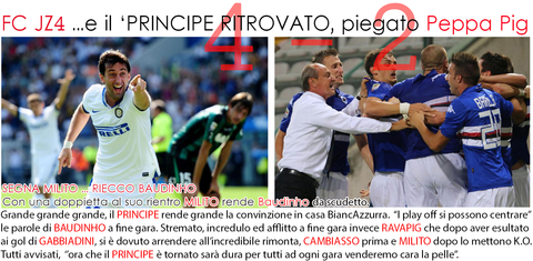 Stremato, incredulo ed afflitto a fine gara invece RAVAPIG che dopo aver esultato ai gol di GABBIADINI, si è dovuto arrendere all?incredibile rimonta, CAMBIASSO prima e MILITO dopo lo mettono K.O.