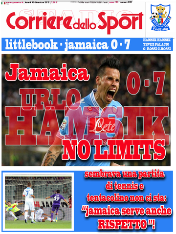 ...da Stefano Messina: Vittoria amara perché' ottenuta contro un grande amico,un grande uomo,un fratello,ma bisogna andare avanti ,la vittoria ci da morale perché abbiamo vinto con una delle squadre più forti del torneo,cosa dire di Jamaica?Solo culo e lui c'è la bello grosso,ma gli stessi giocatori non possono fare sempre gol,crollerà,per quanto riguarda Pallotta sta continuando a pagare dazio per la campagna acquisti a dir poco vergognosa,ma il budget messo a disposizione dalla lady era quello è miracoli non se ne possono fare e poi dal bagno tutto diventa difficile..........