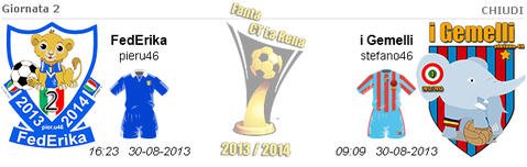 Che c'è la siamo giocata....la differenza i gol....1-2 HIGUAIN AQUILANI X gemelli CASSANO X FedErika...poi 3 ASSIST X parte solo che i miei ASSIST li ho fatti X i tuoi gol....AHAHAHHAHAH .... In poche parole hai vinto ed io ti aiutato....ahahhah