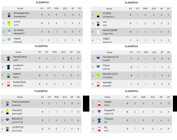 Ecco pubblicate le 6 classifiche finali dei 6 giorni del fantamondiale.