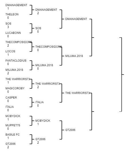 Presto pubblicherò la prossima fase ad eliminazione diretta.