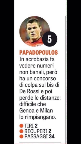 Giuliano io questa settimana nella mia lega sono stato letteralmente schiantato dal 5 dato a Manolas ma li abbiamo media Gazzetta Corriere e se questo tuo discorso potrebbe essere valido per fonti tipo Gazza o La Stampa ti faccio presente che il romanissimo Corriere dello Sport ha letteralmente copiato questi voti dal 4 a Doumbia al 5 a Manolas passando per il 5 di Gervinho.Anzi a quelli come Florenzi e Naingollan che hanno giocato meglio e' stata proprio la Gazza a dare voti migliori rispetto al Corriere dello Sport. Mi chiedo,ma non e' che se un giornale di Roma valuta cosi quei giocatori questi voti saranno quelli giusti?In fondo la Roma non ha vinto contro l'ultima in classifica......