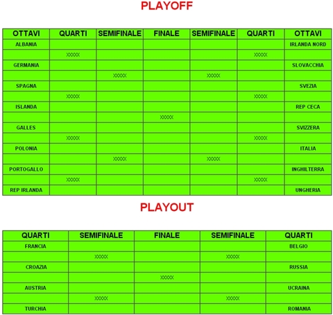 Nei Play-off, alla fine di quattro super sfide combattute fino all'ultimo respiro, accedono alle semifinali per dare l'assalto al titolo, le seguenti corazzate: L'UCRAINA di Atadea che sfiderà L'AUSTRIA di lospettatore, IRLANDA DEL NORD di carlitos79 che si sfiderà con la GERMANIA di zuni87.