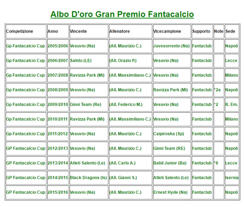 Complimenti entusiasti a due allenatori che iscrivono il loro nome nell'albo d'oro della LEGA PER ESPERTI DI FANTACALCIO.