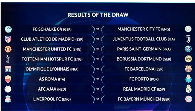 Sorteggiati gli scontri degli ottavi di finale Champions che si disputeranno il 12,13,19, 20 febbraio 2019