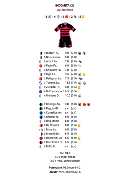bizzarri al. (8.5), bastos (10.0), marusic ad. (9.5), lazaar ac. (9.0), torreira lu. (13.5), allan marques l. (10.0), barak an. (10.0), obi joel (10.0), higuain go. (14.5), immobile ci. (12.5), nani lues c. (11.0).
