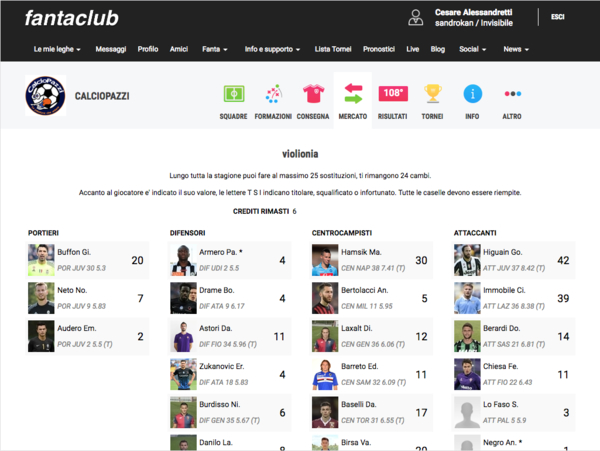 - INSERIMENTO SQUADRA E FANTAMERCATO