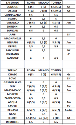 Per chi ne avesse bisogno, nella immagine ci sono i voti del recupero Sassuolo - Torino disputato ieri.