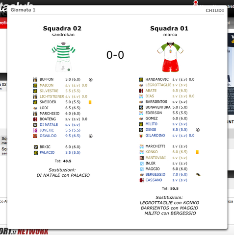 Sono online i voti e quotazioni 2^ giornata anche PER REDAZIONE MILANO.