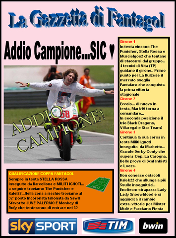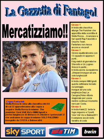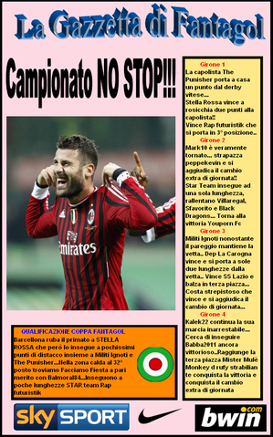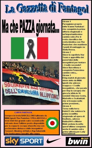 Non sono ancora riuscito a consegnare le formazioni... Purtroppo questa settimana visto il poco tempo a disposizione saltano i commenti sulle partite... Cmq cè nell'home page la gazzetta di Fantagol sulla 7° giornata