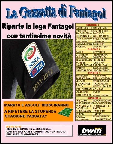 Ringrazio alloc93 per la preparazione della Gazzetta di Fantagol