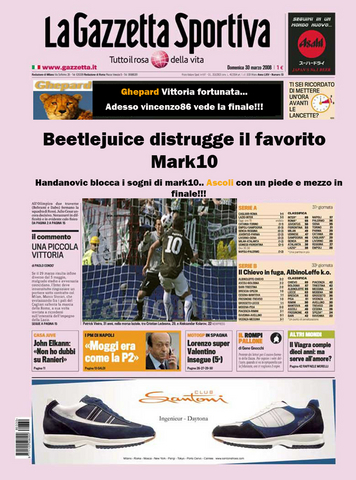 Nella home page della lega trovate i risultati delle due semifinali, manca ancor Buffon per Ghepard e Mark10... Se non ci dovessero essere dei travolgimenti le semifinali dovrebbero cosi finire: Militi Ignoti - Ghepard 1-2 Beetlejuice - Mark10 4-2 Ci sarebbe dunque una sconfitta clamorosa per il favorito Mark10...