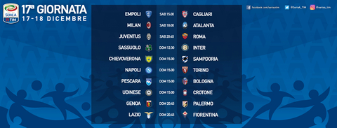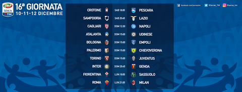 ATTENZIONE LIMITE CONSEGNA FORMAZIONI VENERDI 2 DICEMBRE ORE 20.15 ANTICIPO NAPOLI - INTER.