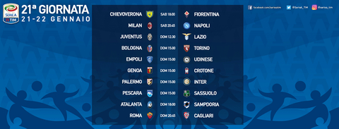 ATTENZIONE LIMITE CONSEGNA FORMAZIONI SABATO 21 GENNAIO ORE 17.30 ANTICIPO CHIEVO - FIORENTINA.