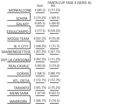 RISULTATI 4^ FASE DELLA FANTA CUP