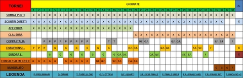 Giornata dopo giornata potete seguire tramite questa tabella quale competizione è in corso.
