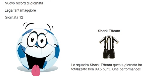 GIORNATA 12: La squadra Shark Ttteam questa giornata ha totalizzato ben 99.5 punti.