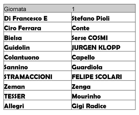 COMMENTI DELLA PRIMA GIORNATA DISPONIBILI E CLASSIFICA TOP AGGIORNATA. BUONA LETTURA