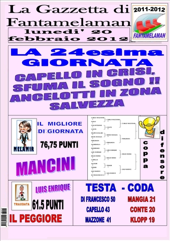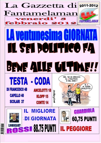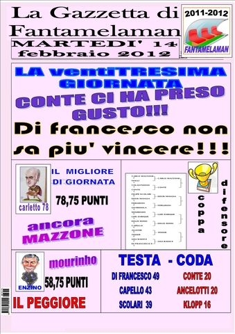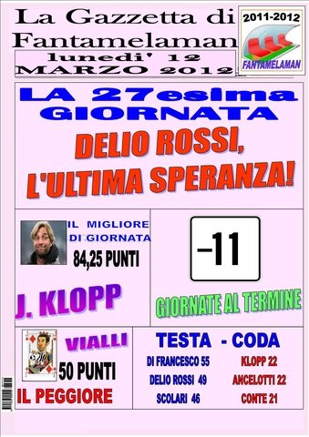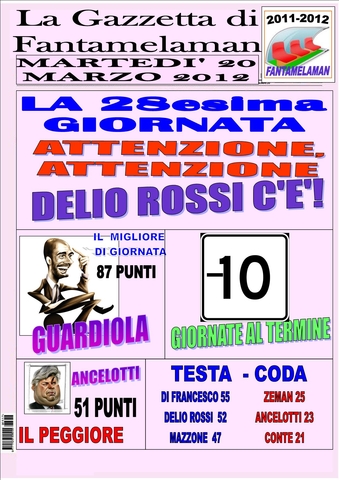 LA GAZZETTA DI FANTAMELAMAN DEDICA LA PRIMA PAGINA ALLA RINCORSA DI DELIO ROSSI A SOLI 3 PUNTI DALLA TESTA!