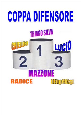 questa settimana parte la COPPA DIFENSORE con le migliori 16 squadre del turno scorso. al vincitore verra' assegnato il difensore THIAGO SILVA, al secondo classificato verra' assegnato BASTA e al terzo posto sara' assegnato LUCIO.