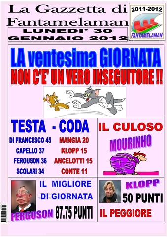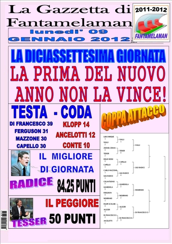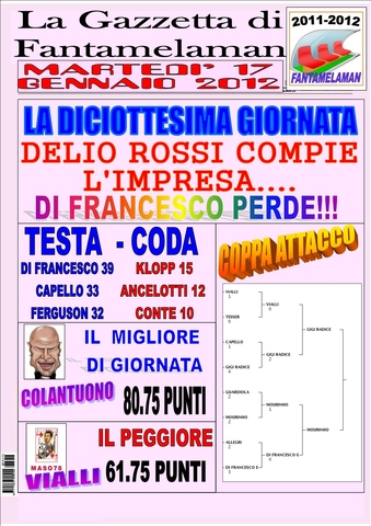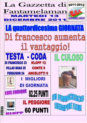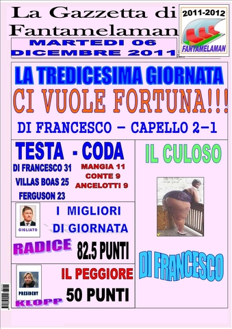 ECCO IL GIORNALE, INCREDIBILE DI FRANCESCO VINCE ANCORA....PERO' CHE FORTUNA ANCHE OGGI FA GIUSTO 78 E VINCE 3 - 2. E' IMPOSSIBILE!!!!