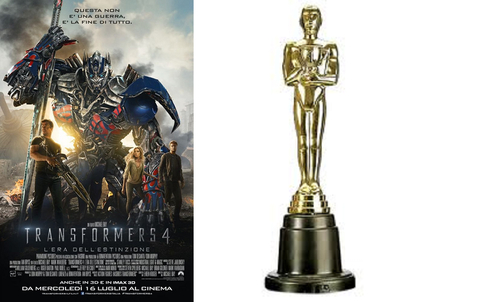 Il milionario set dei Transformers conquista la critica e la sua prima statuetta del 2014,Oscar come miglior film,a dimostrazione che il mondo delle macchine-robot ha più di un'ascendente sul pubblico giovane e meno giovane.Tanti soldi spesi e un nuovo cast per questo sequel di fantascienza,ma gli effetti speciali ripagano con il premio più ambito!Complimenti a Enzino.