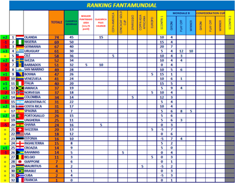 Dopo 4 giornate la situazione nel Ranking è cambiata radicalmente grazie alle vicissitudini nella classifica generale ed ai punti che sta portando il mondiale di Russia..