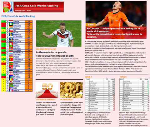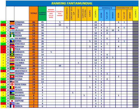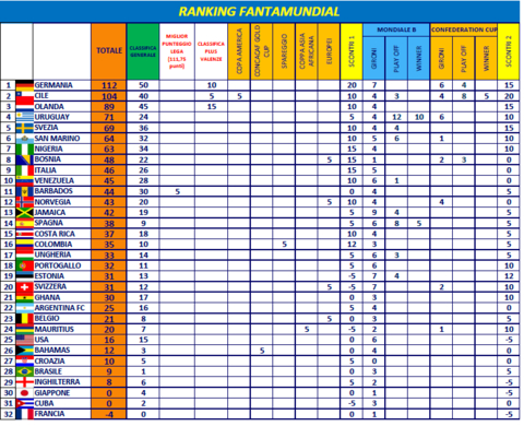 Al secondo posto c'è la GERMANIA che continua l'altalena ma resta sempre in orbita podio. Adesso è a 61 punti con una Confederation da giocare, vantaggio non d...