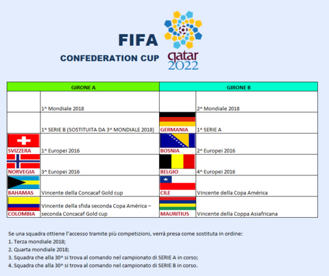 Aggiornato anche il tabellone della Confederation Cup.