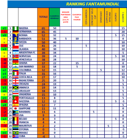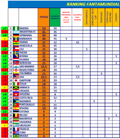 Mi ritrovo 14^ con 30 gol fatti e 38 subiti. Che sfortuna solo le Bahamas arrivano a 30 tutti gli altri sotto i 30