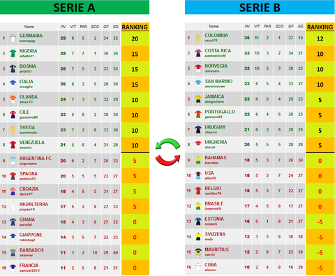 In Serie A la gran sorpresa è la vittoria della GERMANIA di Mario che in stile 5 maggio supera al fotofinish la NIGERIA dominatrice della stagione e in un colpo solo porta a casa 20 punti Ranking e accesso alla Confederation Cup..