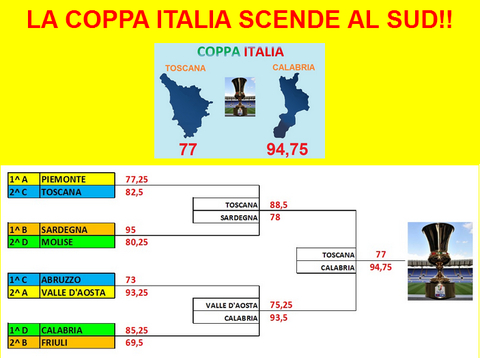 Dopo 7 vittorie su 7 non poteva esserci epilogo migliore per la CALABRIA di Silvestro che vince la sua prima Coppa Italia con una grande vittoria finale sulla TOSCANA di Gaetano...