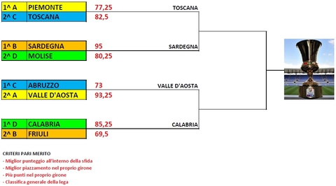 La TOSCANA di Gaetano supera in semifinale la quotata alla vittoria finale SARDEGNA di Christian con un ottimo 88,5 a 78... A fare la differenza per i toscani ci ha pensato Hamsik e Di Natale che ha vinto la sfida contro Muriel