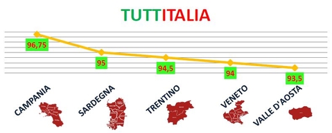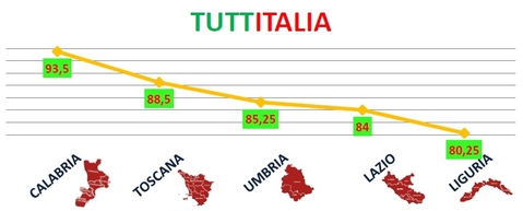VALLE D'AOSTA 75,25 - CALABRIA 93,5