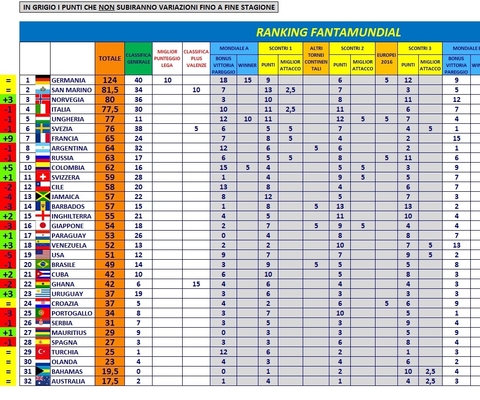 Finiti i gironi di Russia il nostro Ranking x nazioni recita sempre: